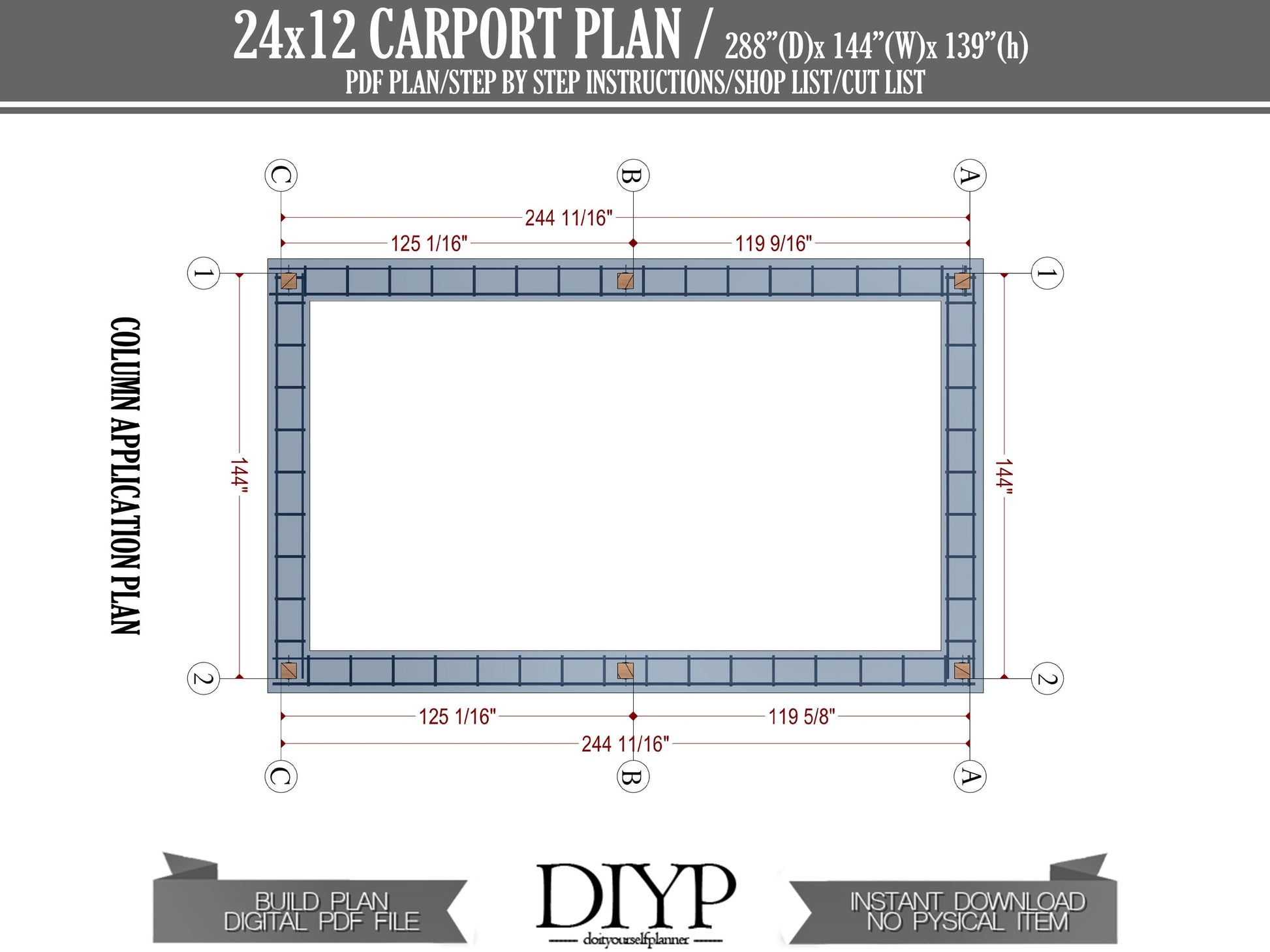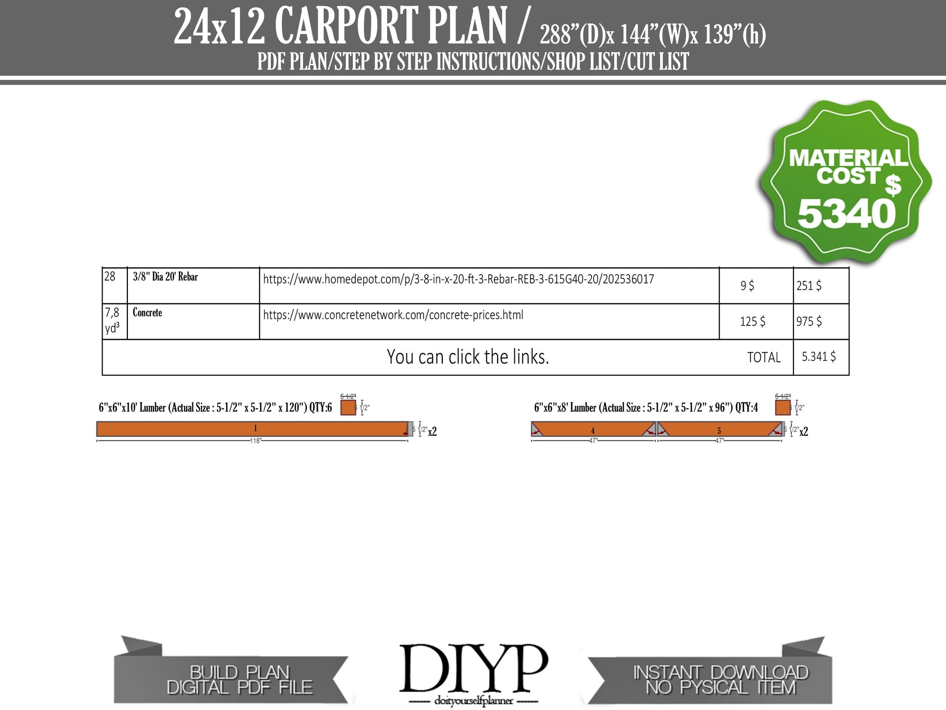 12'x24' Carport Plans DIY Wooden car garage - Download Printable PDF