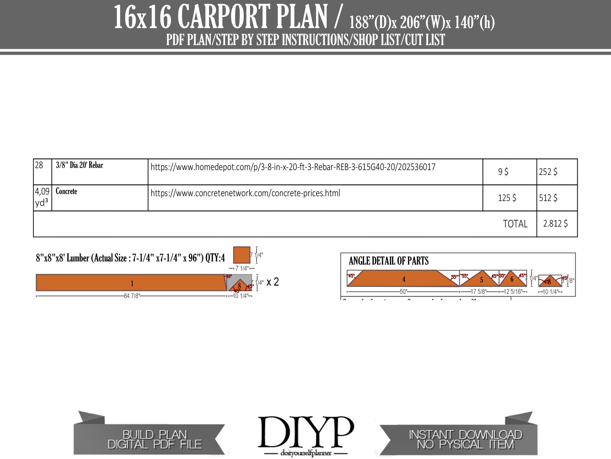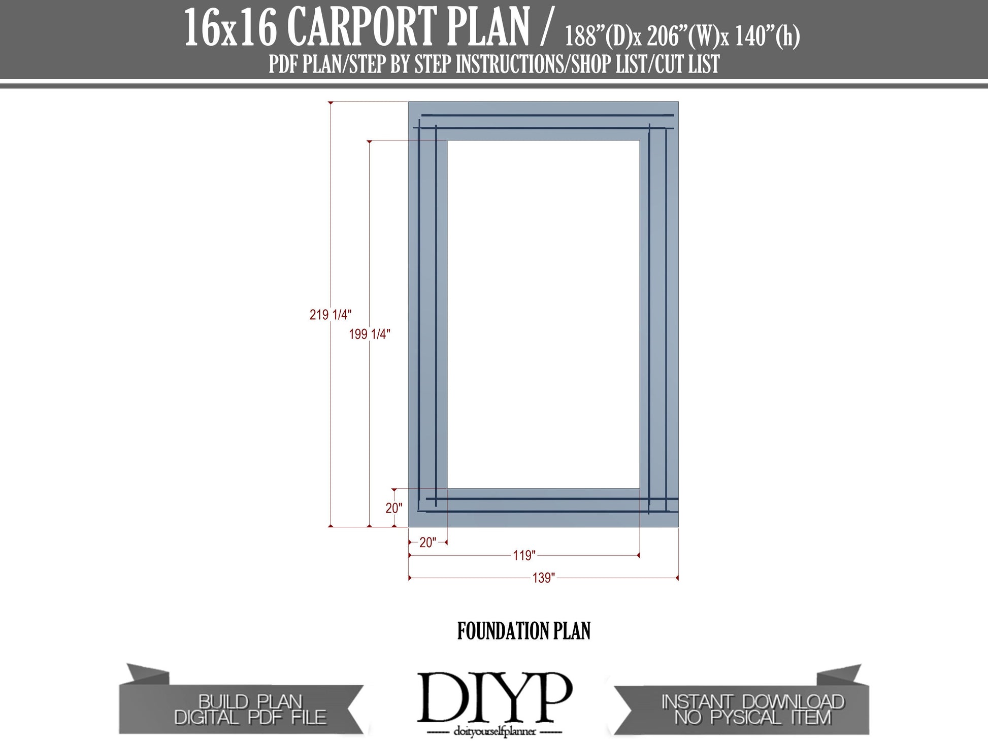 16'x16' Carport Plans - DIY Wooden car garage - Download Printable PDF