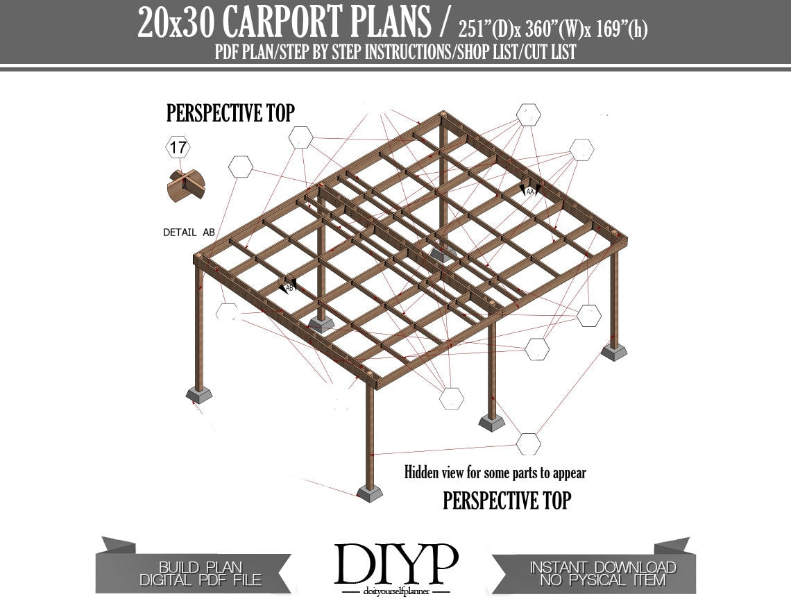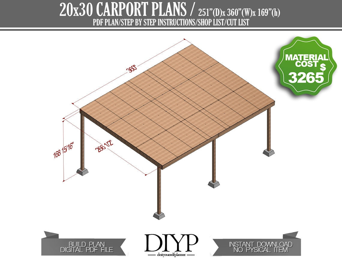 20x30 Wooden Carport plans, diy car garage ideas, easy build plan for woodworkers
