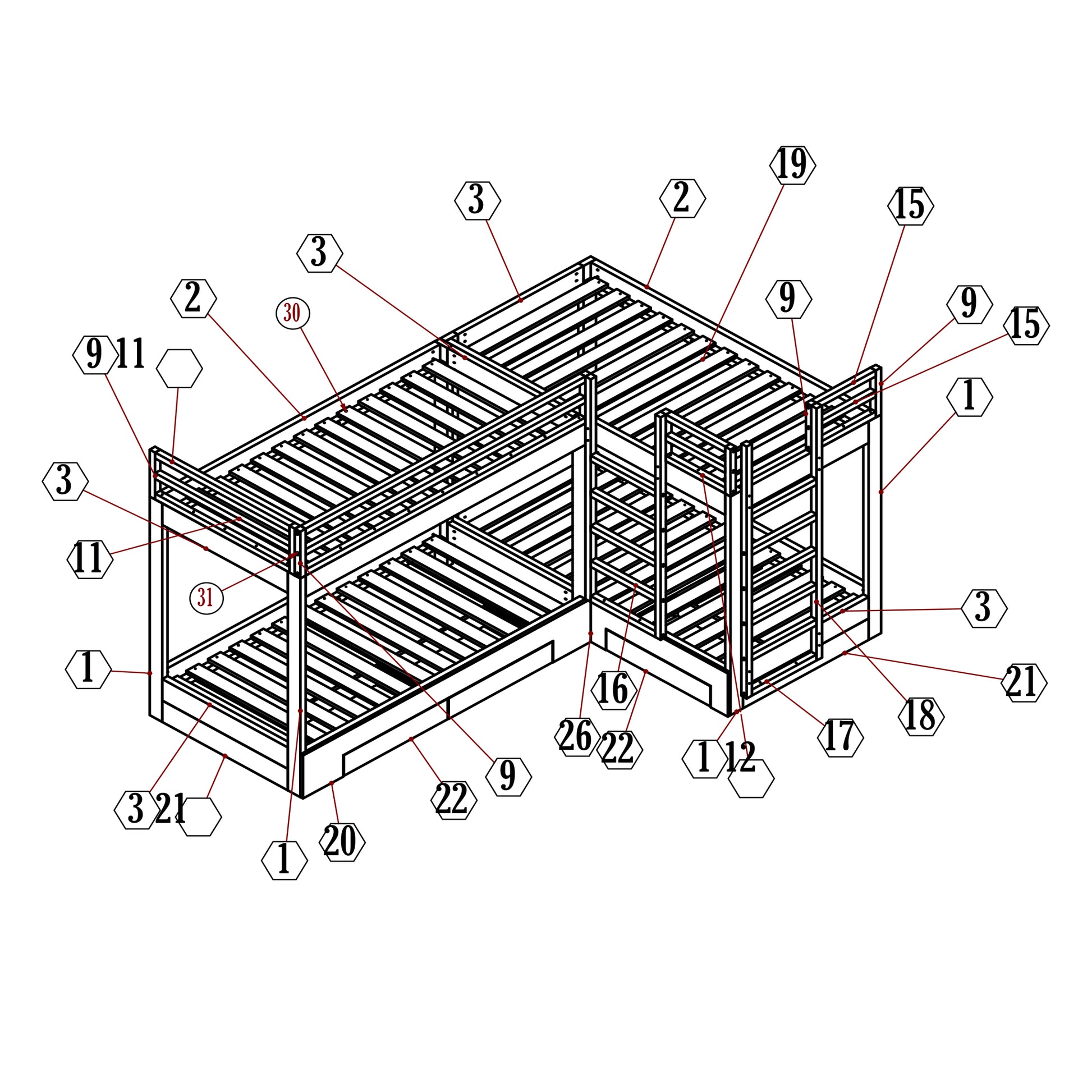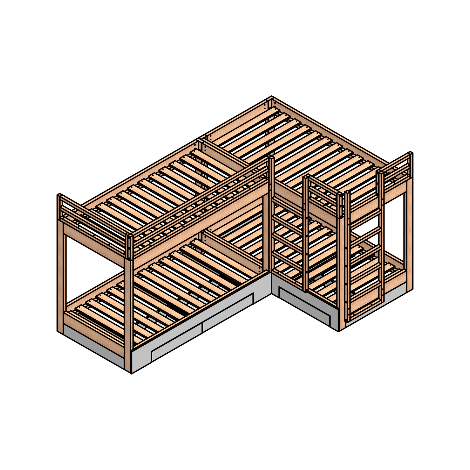 4-in-1 Twin Bunk Bed with Storage: DIY Plans and Animation