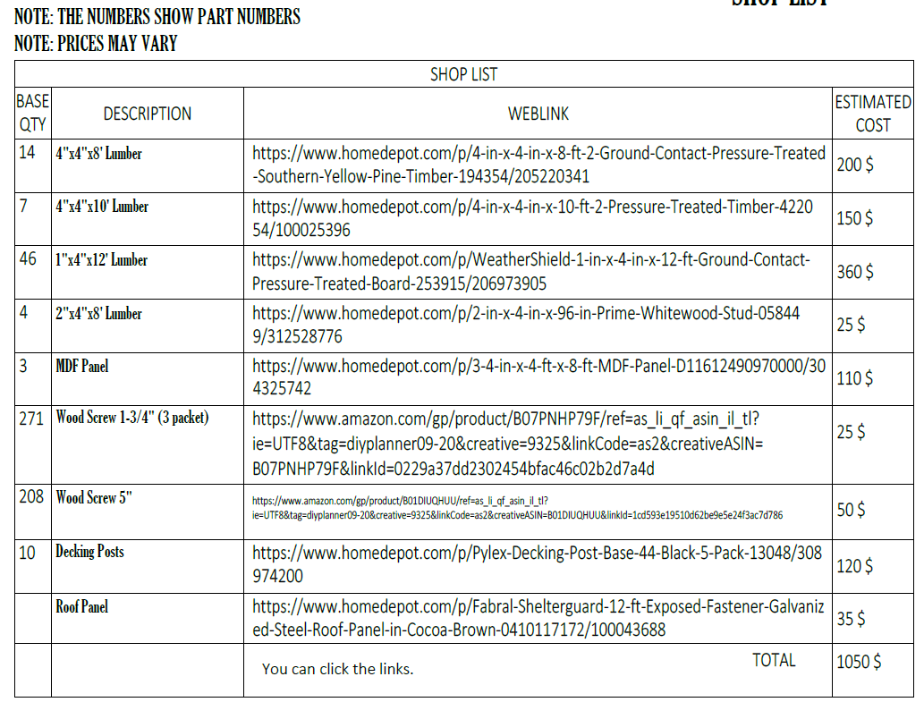 - Parts list and cutting list: Pre-calculated parts and cutting lists save you time and minimize waste.