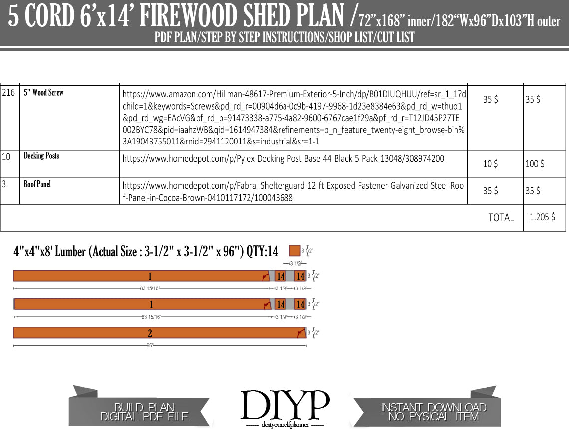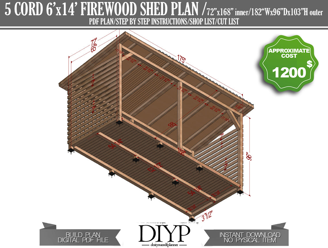 6x14 Firewood Shed Plans - DIY Woodworking Project with Construction Animation, Shopping List, Cut List & More!