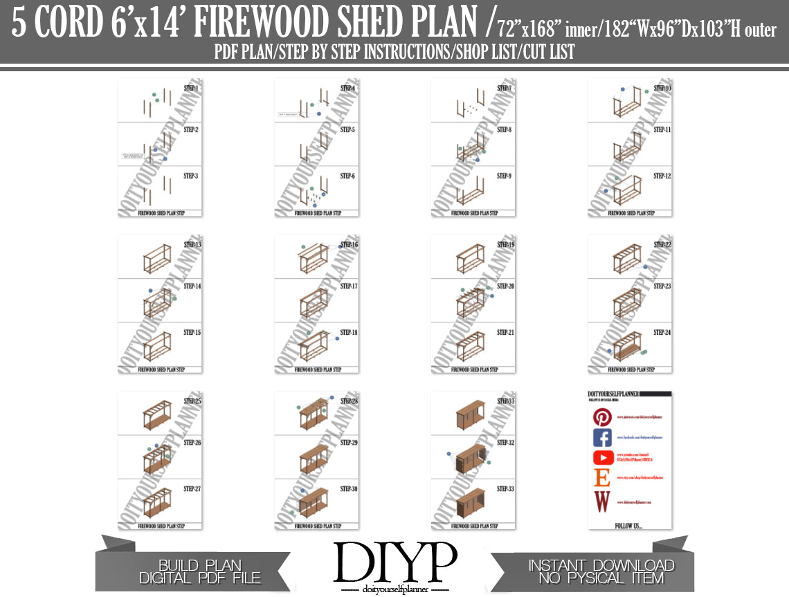 Build your own sturdy and spacious firewood shed with these comprehensive DIY woodworking plans! This 6x14ft shed is designed to keep your firewood dry, organized, and easily accessible, making it the perfect addition to any backyard or homestead.