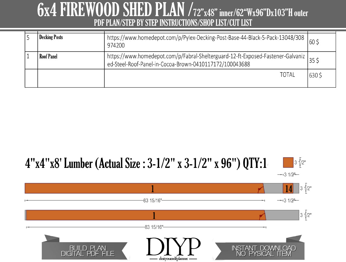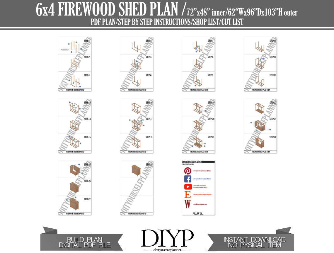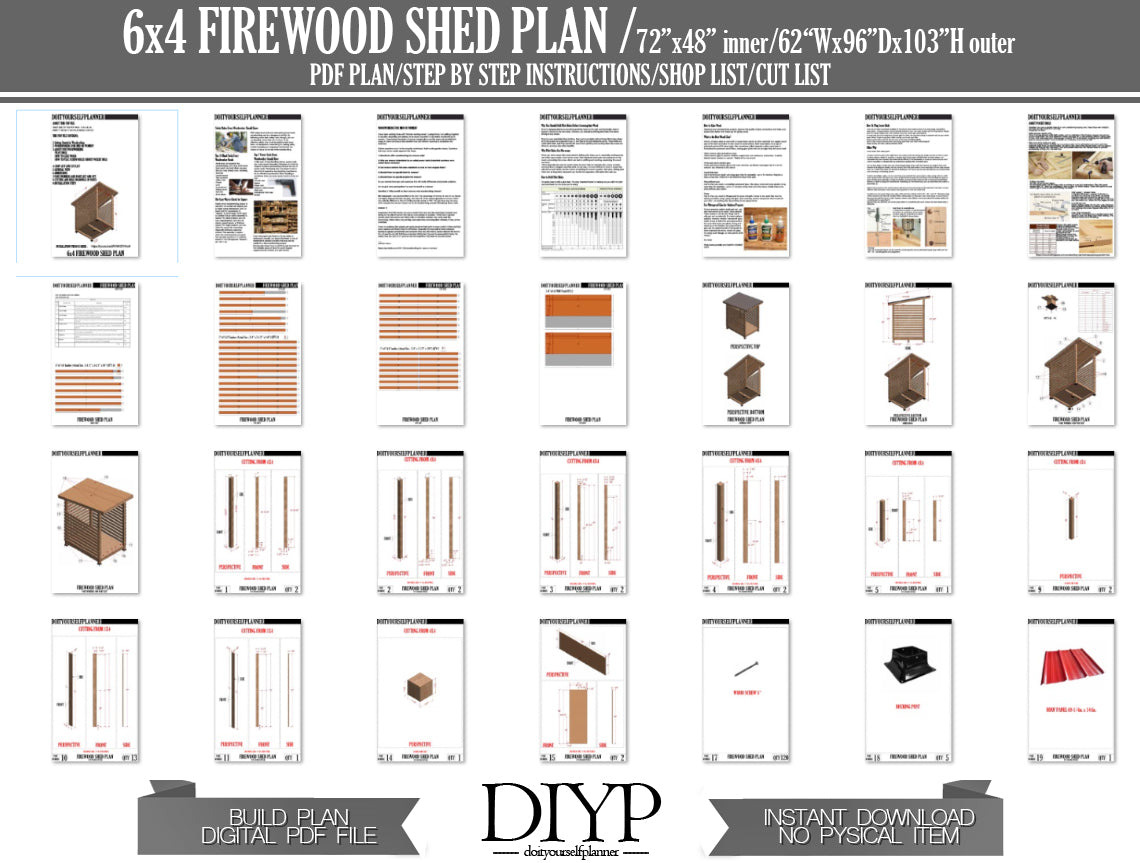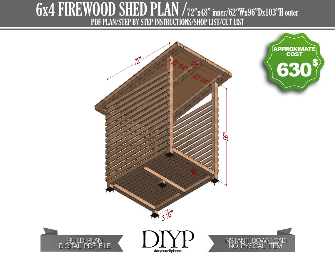 6x4 Firewood Shed Plans | DIY Wood Shed | Easy to Build | Instant Download | Full Cut List