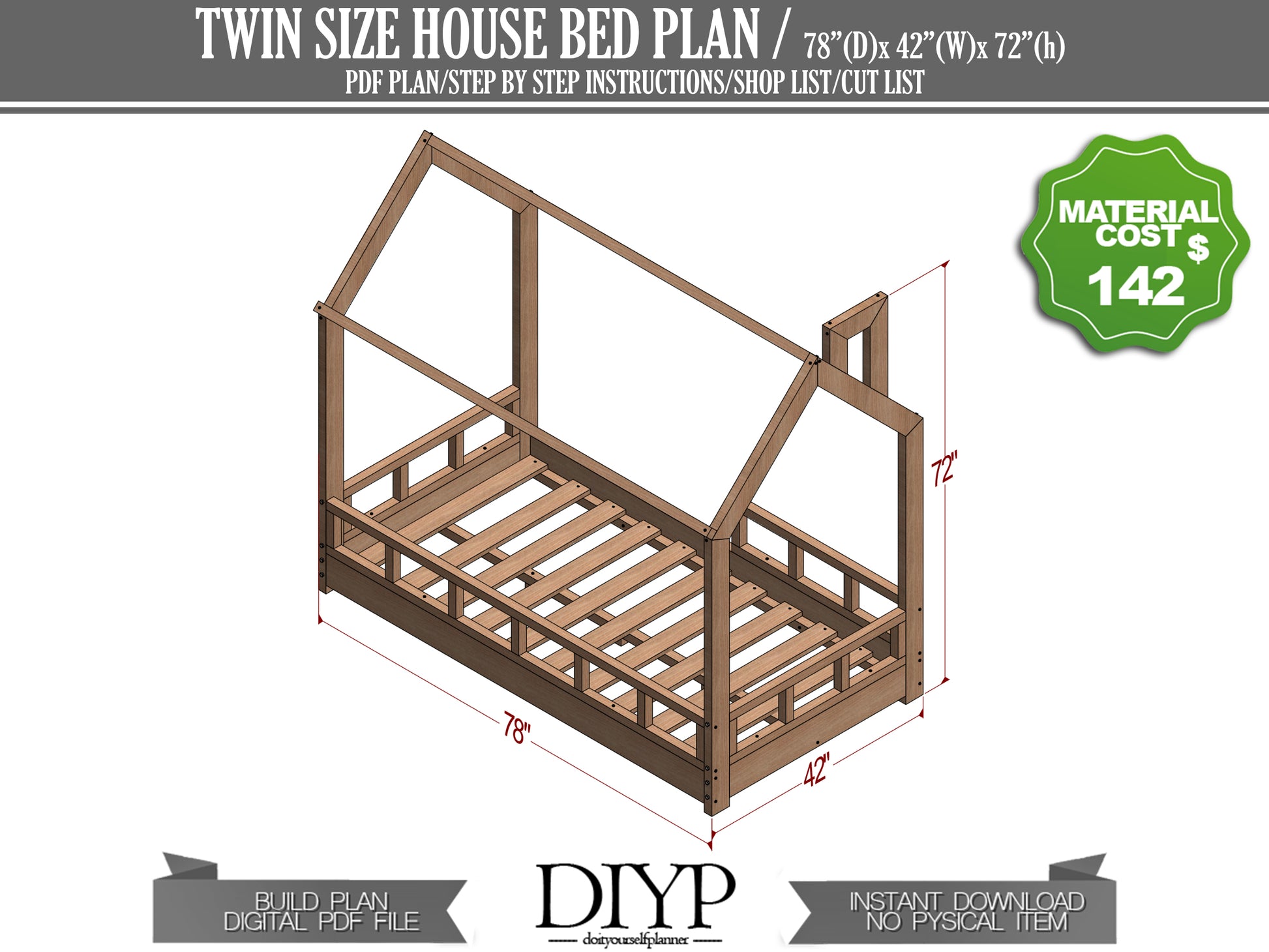 Embark on a fulfilling DIY journey and transform your child's bedroom into a magical retreat. Purchase our twin-size house bed with wood chimney plans and enjoy the satisfaction of creating an enchanting space for your little one.