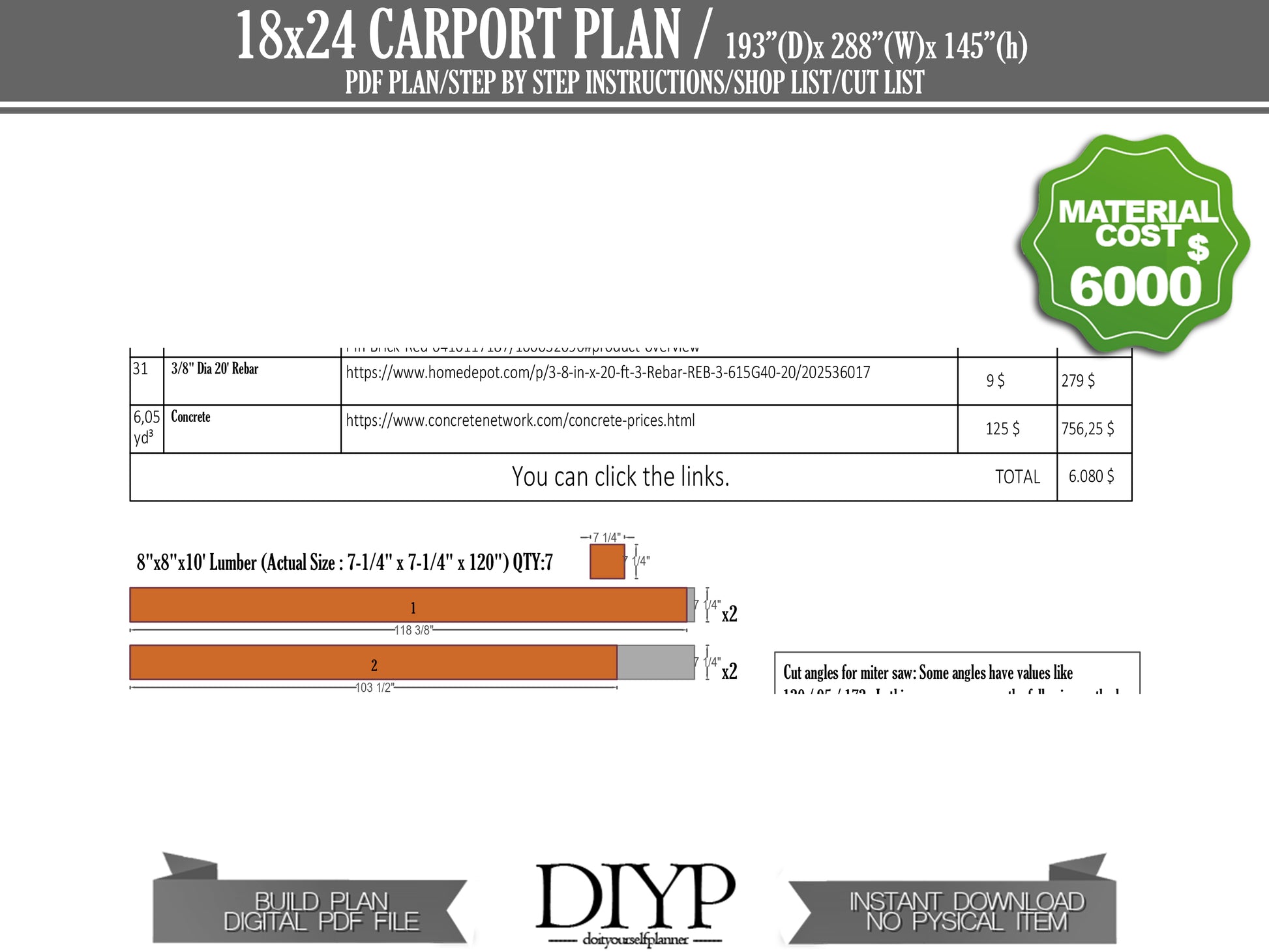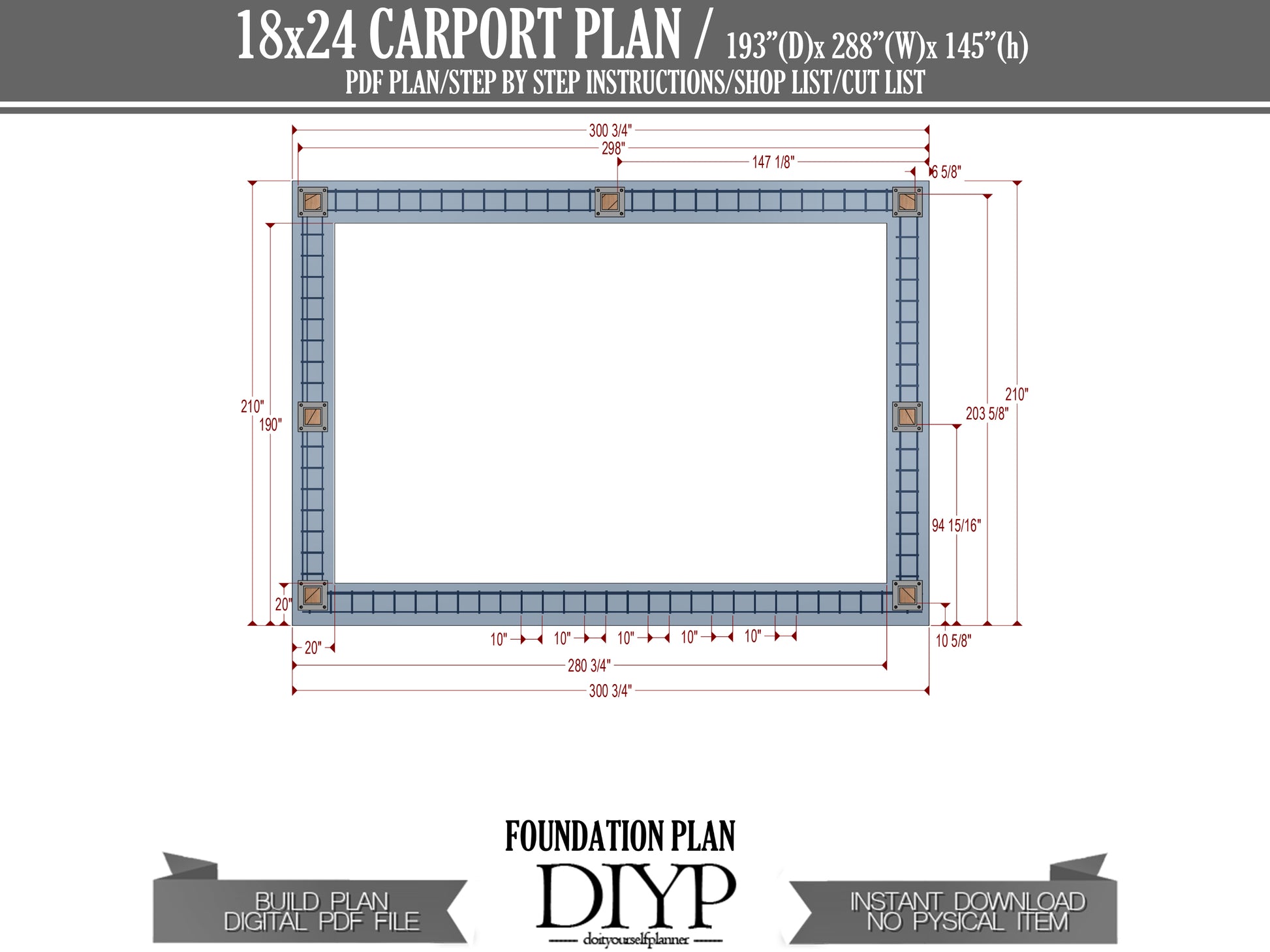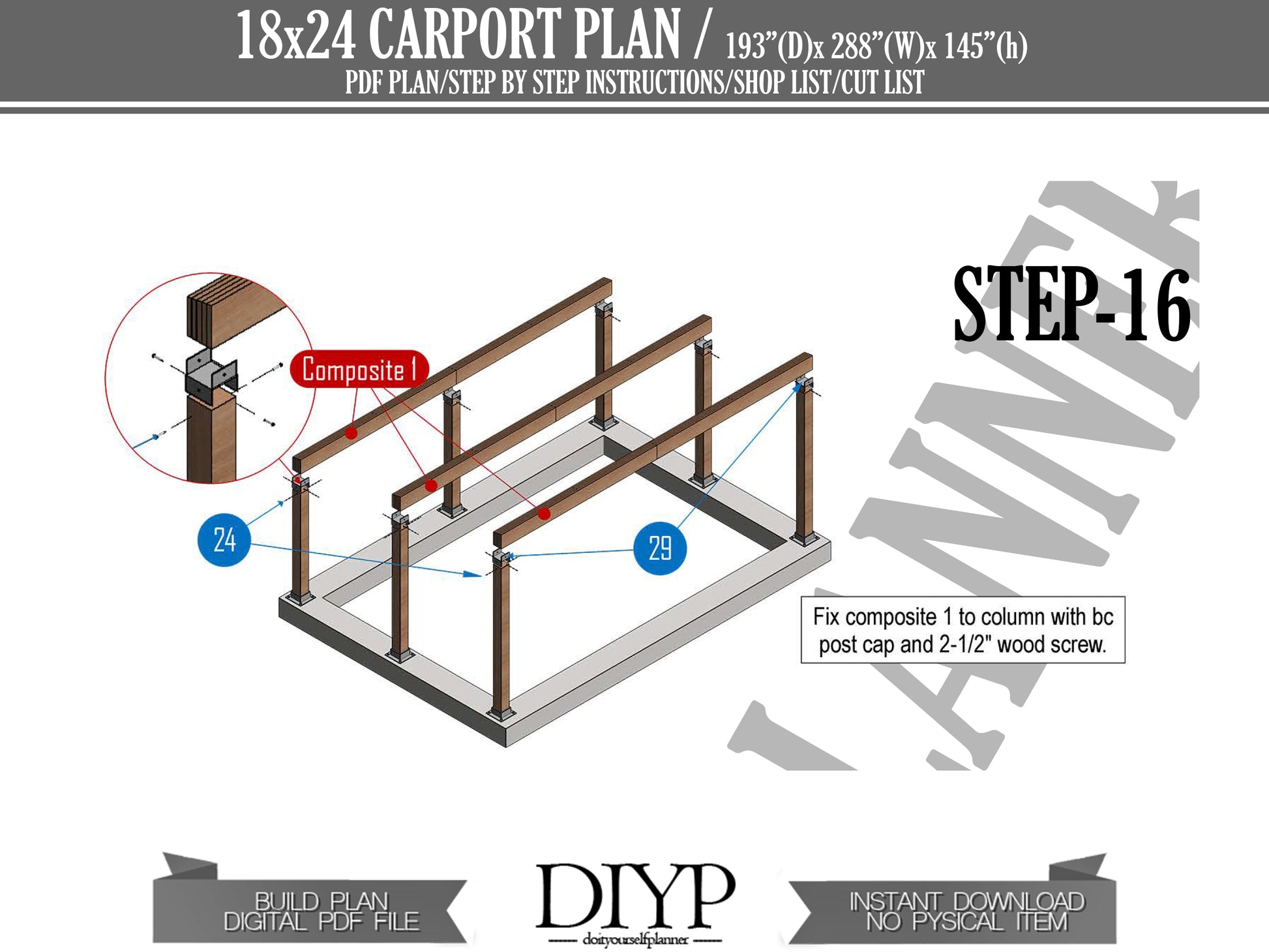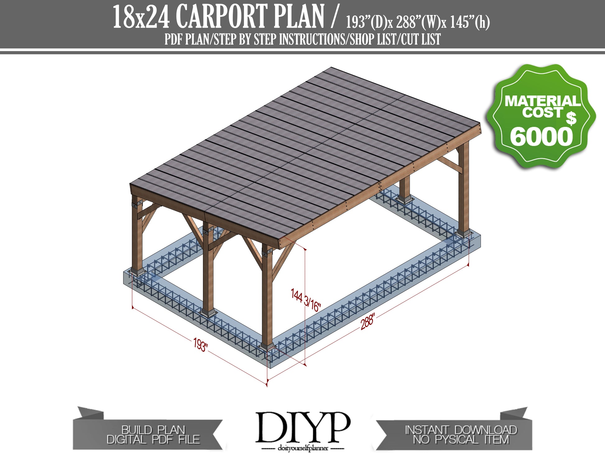 DIY Carport Plans: 18x24 Single-Pitched Roof with Construction Animation, Shopping List, and Cut List