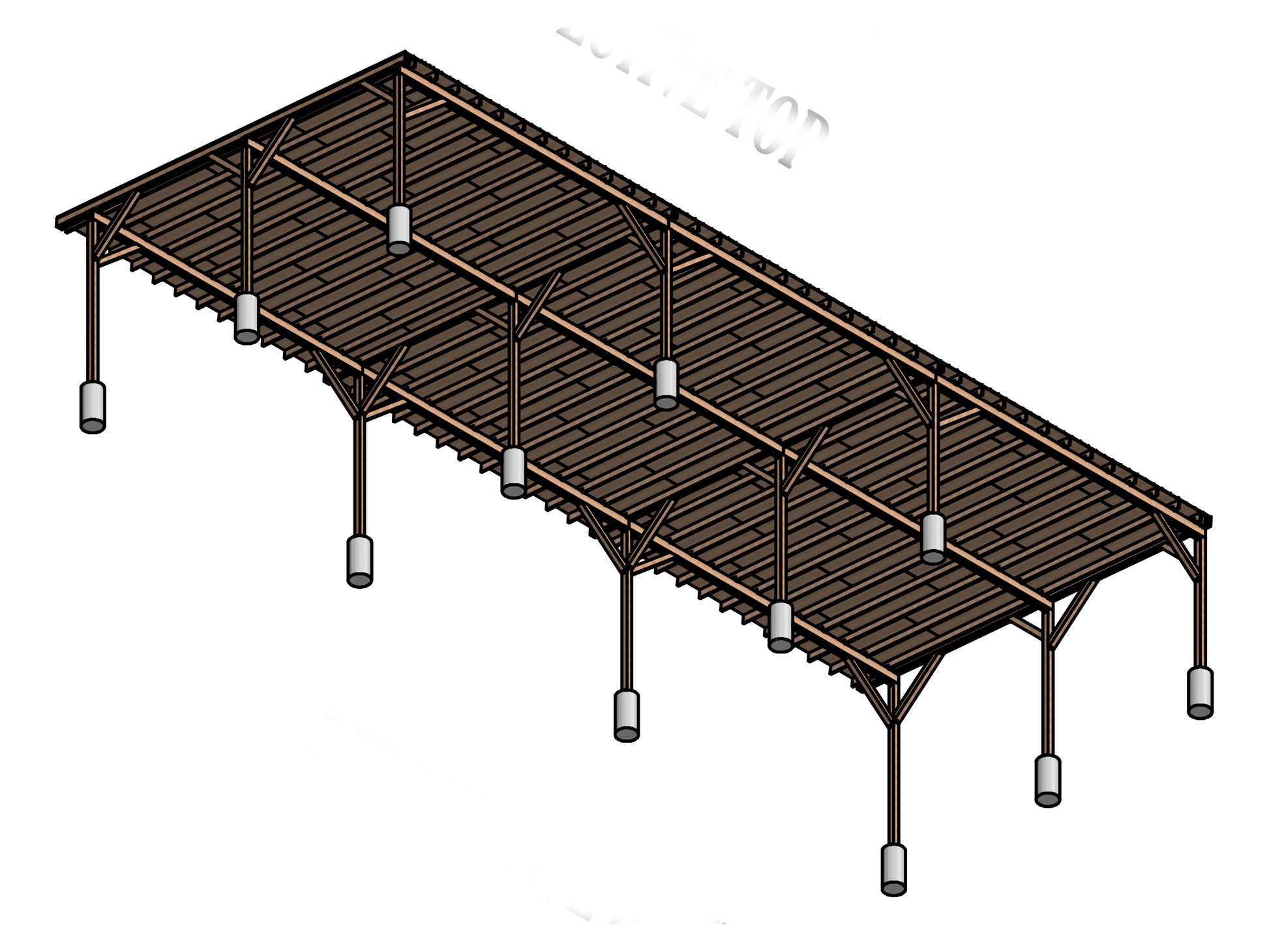 DIY Carport Plans - 32x72ft Single-Pitched Roof - Construction Blueprints, Material List, Cut List, and 3D Animation