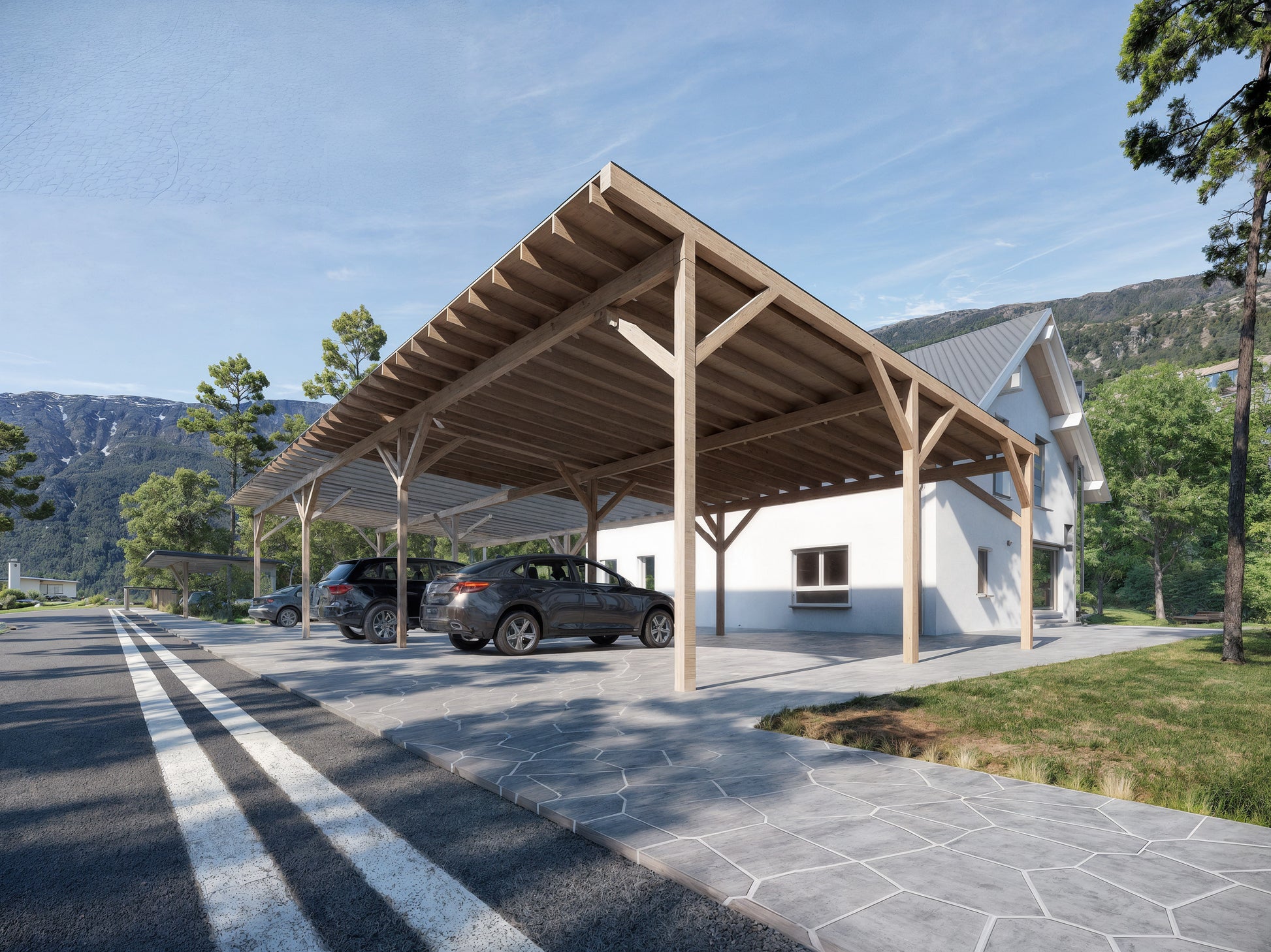 Build your own spacious and sturdy carport with these comprehensive DIY plans! This 32x72ft carport design features a single-pitched roof for efficient water runoff and a modern aesthetic. Our detailed plans provide everything you need to construct this carport with confidence, even if you're a beginner DIYer.