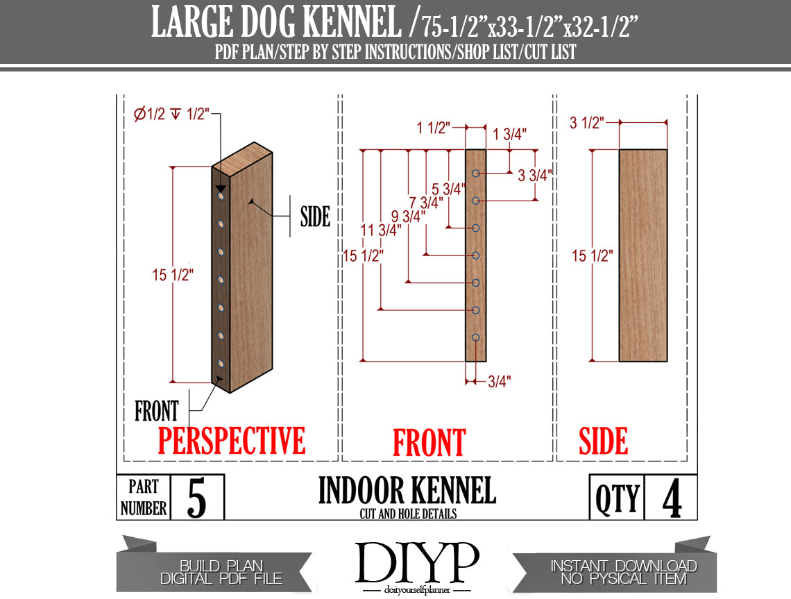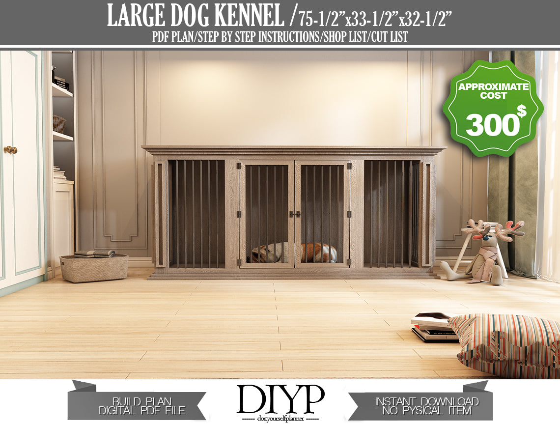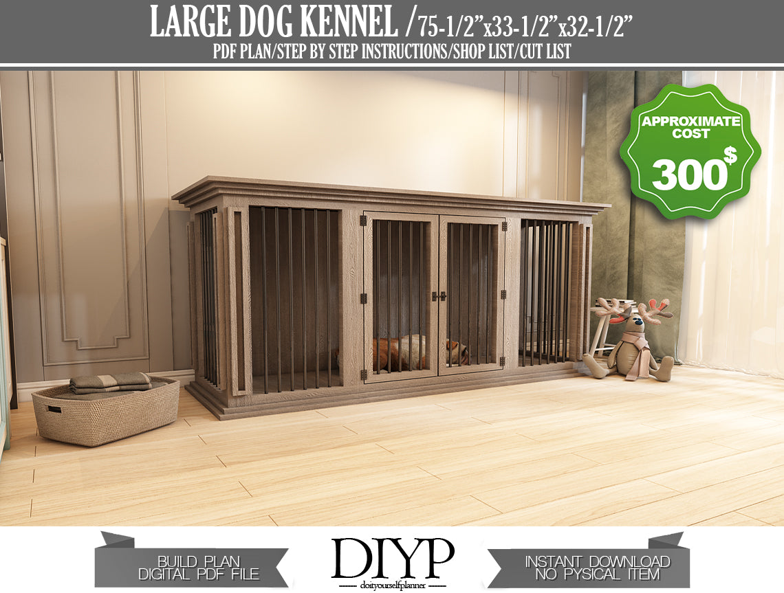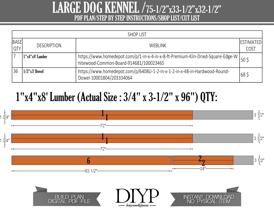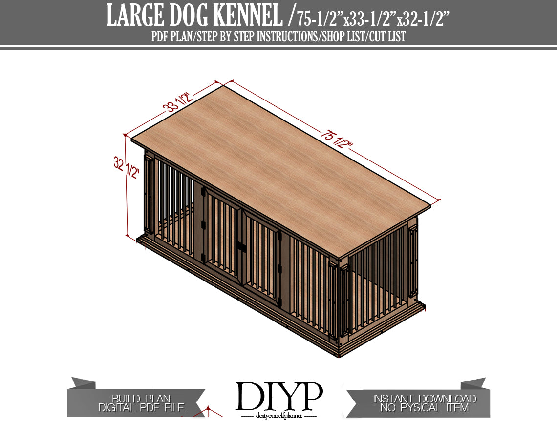 This detailed guide provides everything you need to construct a spacious and sturdy 75x33x32 inch kennel, perfect for medium to large-sized dogs. We've made the process incredibly easy, even for beginner DIYers, with clear step-by-step instructions, a complete shopping list, detailed parts list, and a precise cutting list.