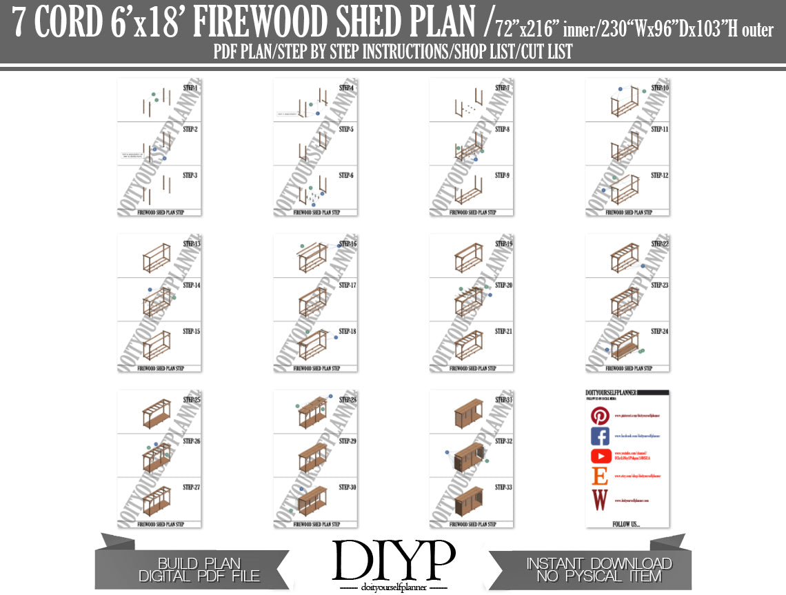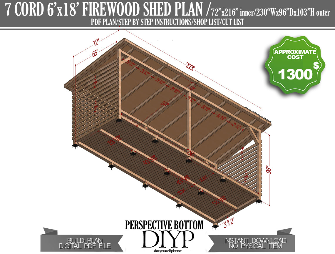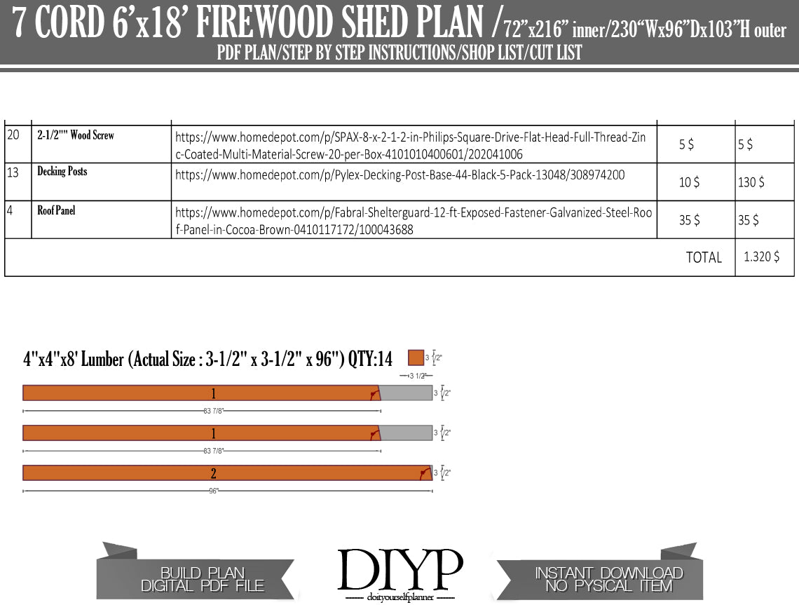 DIY Firewood Shed Plans - 6x18ft with Construction Animation, Shopping List & Cutting List