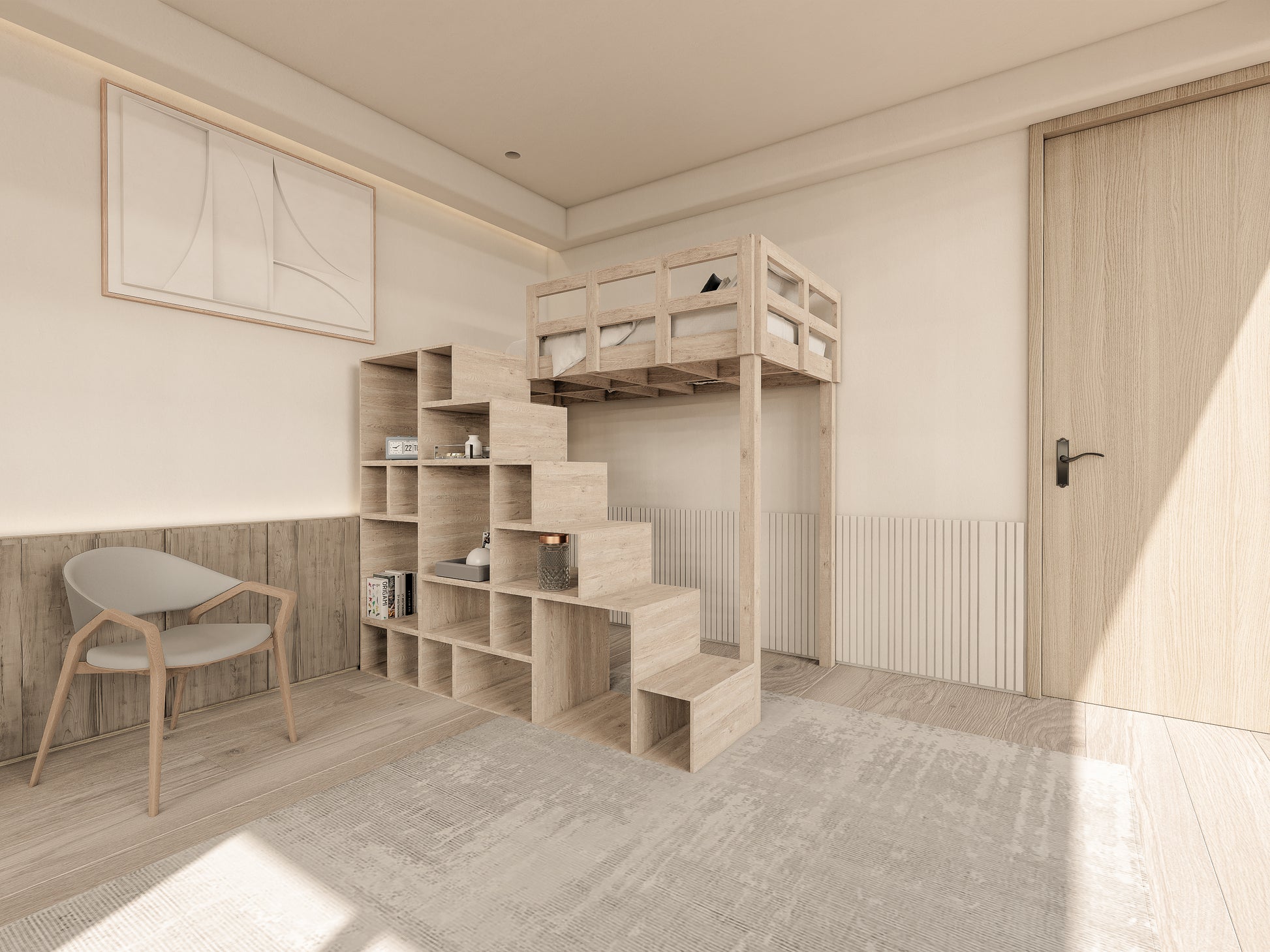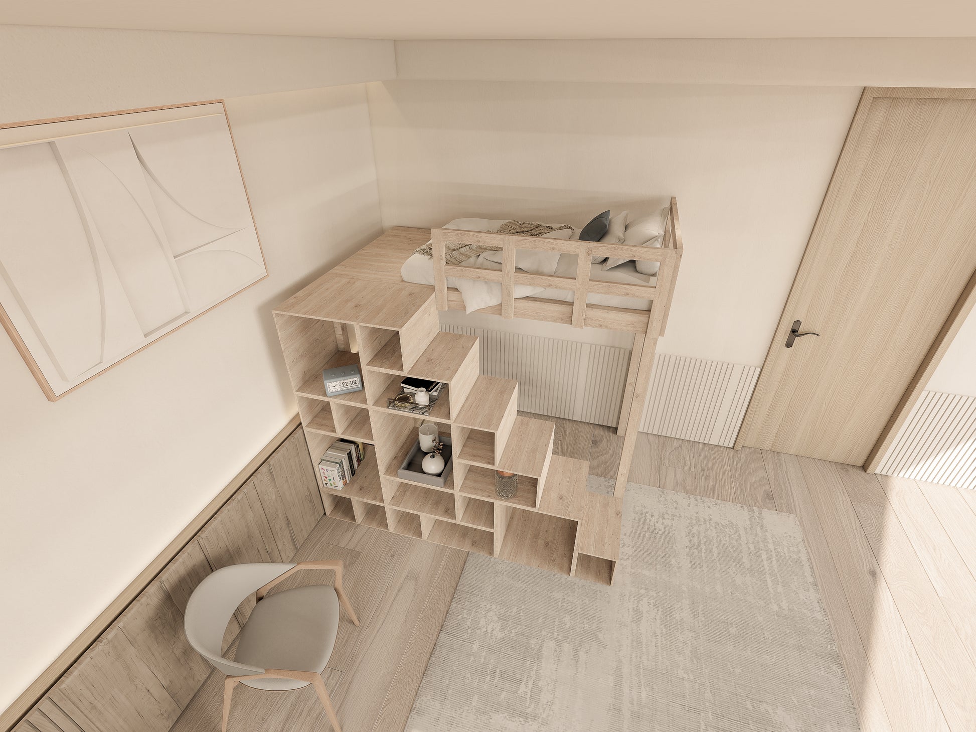 Cube stairs not only offer access but valuable storage. Ideal for DIYers, this plan transforms your bedroom into an efficient and stylish haven.