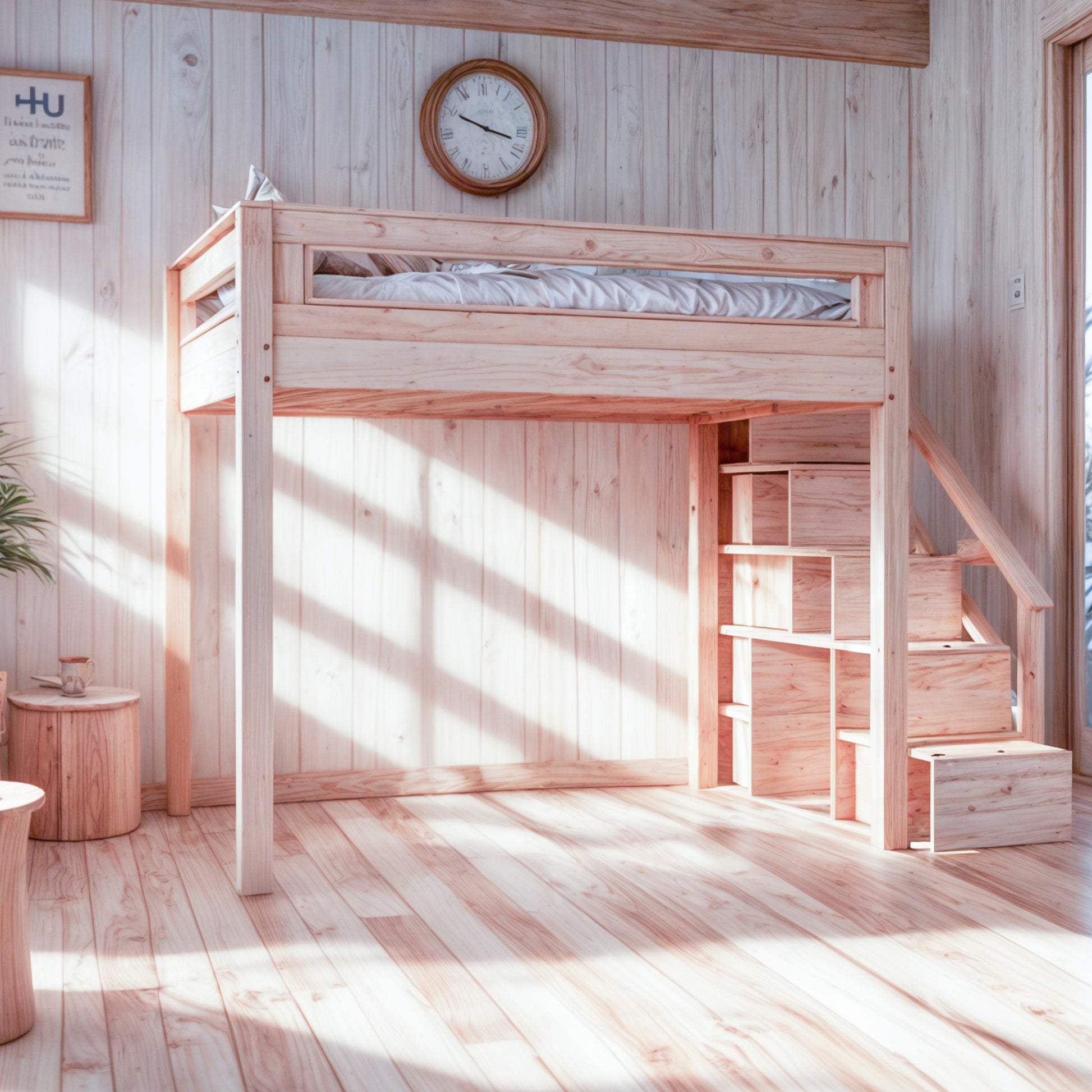 DIY Full-Size Loft Bed with Storage Stairs & Lounge Area | Space-Saving Modular Bed | Beginner-Friendly Woodworking Plan | Digital PDF