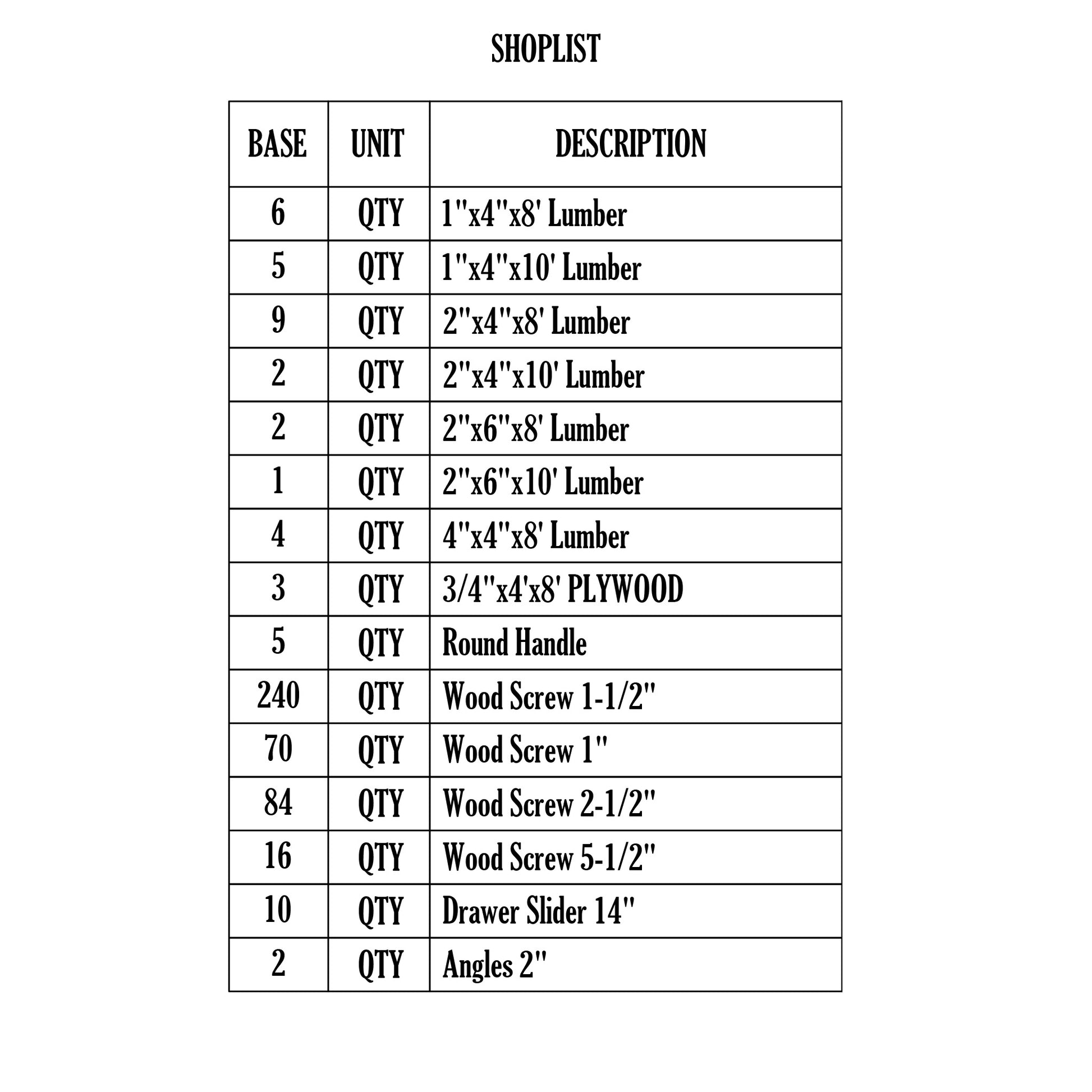 Full Woodworking Package: This comes with cut list, shopping list, pilot hole placements, and angle guides.