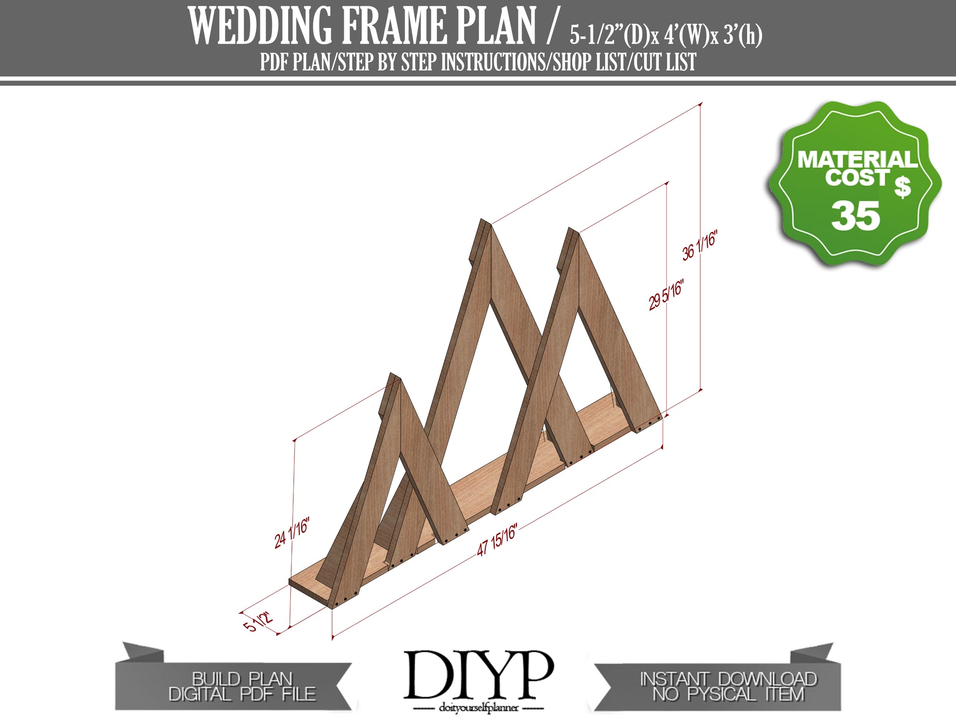 DIY Mountain Wedding Arbor Plans - 48" Long x 36" High - Easy Build with Animation