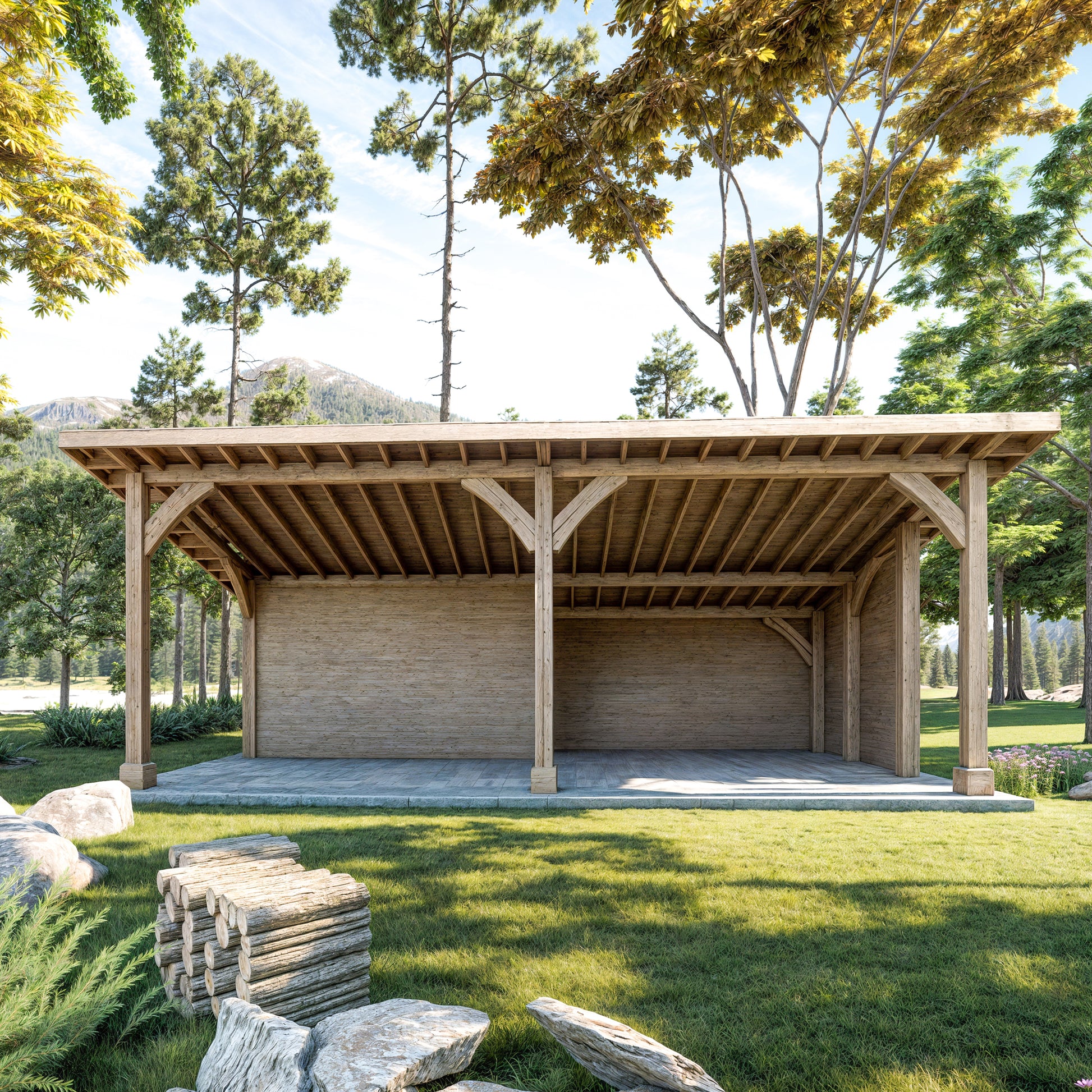 DIY Open Kitchen Plans, 15x30 ft, with 5x15 ft Dual Storage, 3/12 Roof, Woodworking Project, Construction Animation Included
