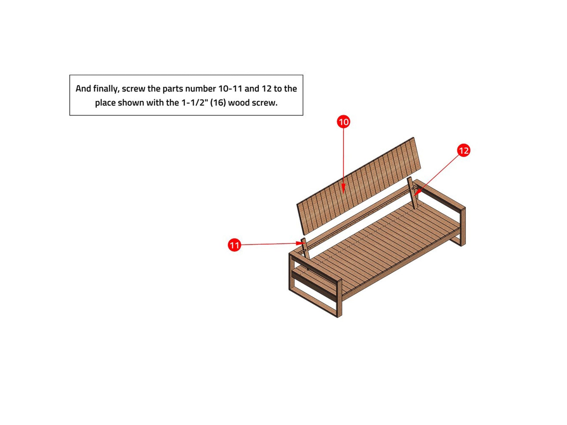 Do you want to make a beautiful outdoor sofa? With this plan, you have everything you need. It includes shopping list, step by step setup instructions, how to places lumber pieces, how to cut, where to screw, where to ream or which piece you should nail. All you have to do is follow the steps in the pdf file you downloaded. If you want this chair, just purchase this plan and start to make. Even you are in the beginning level of woodworking, don't worry it is very simple.
