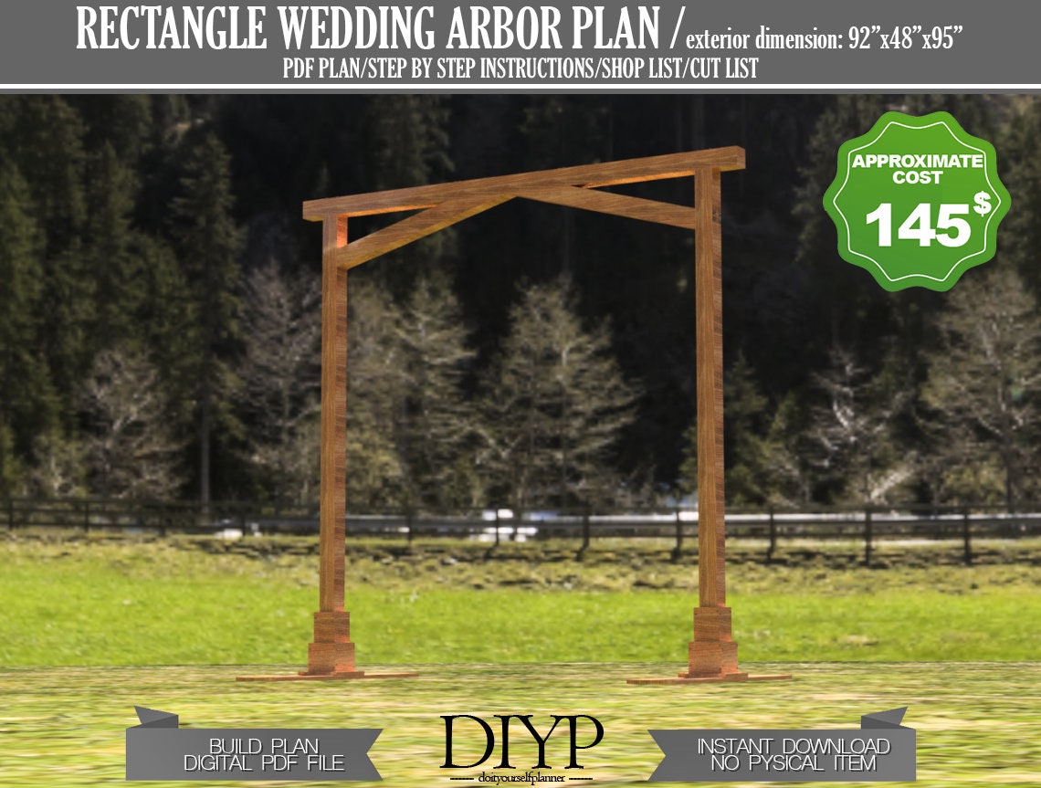 Would you like to make your own rectangle wedding arbor for a low price.Great idea for your happiest day.Everything you need is in this plan.This wedding arch approx. cost is 145$.