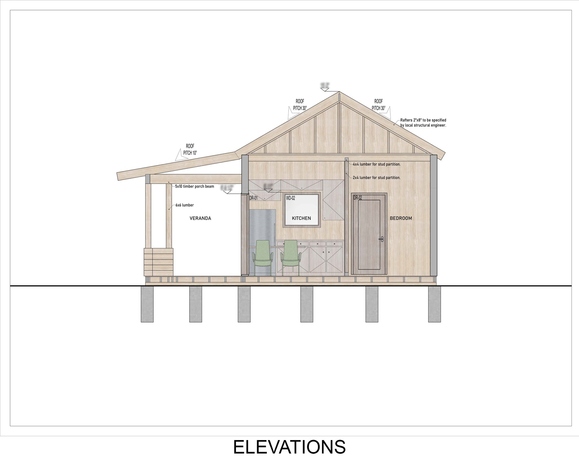 - Building Dimensions: 20 ft x 16 ft (excluding veranda)