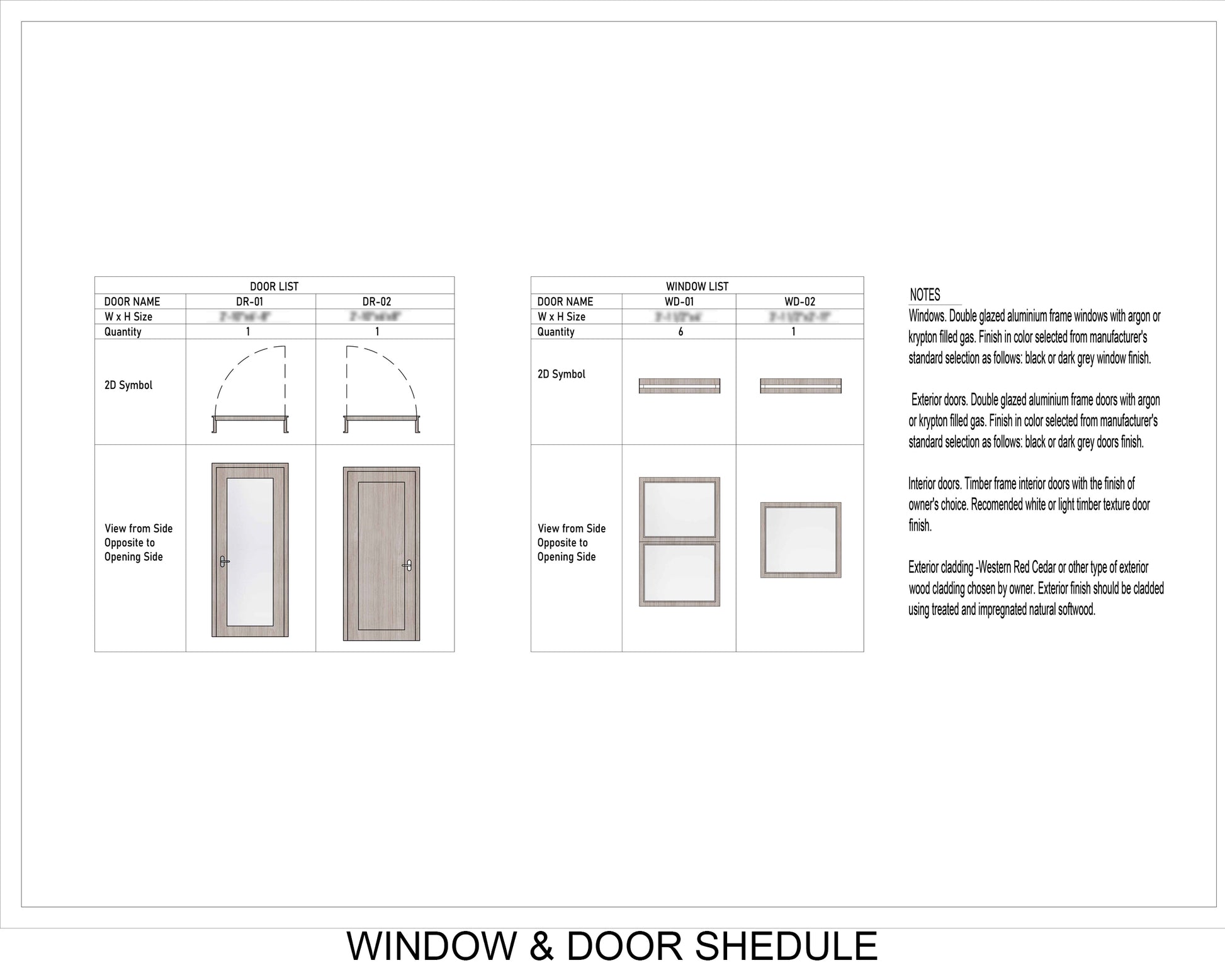 - Door and Window Details: Specifications for doors and windows, including sizes, types, and materials.