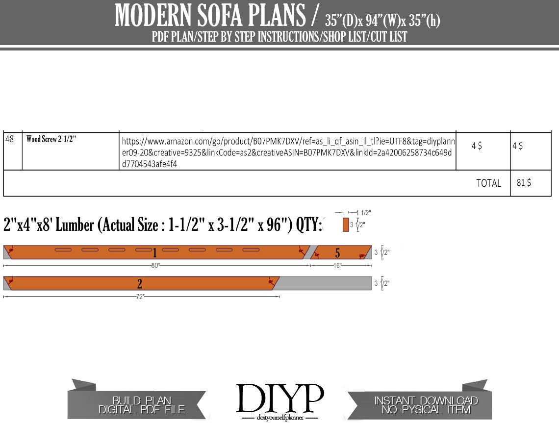 Do you want to make a modern sofa? With this plan, you have everything you need. It includes shopping list, step by step setup instructions, how to places lumber pieces, how to cut, where to screw, where to ream or which piece you should nail. All you have to do is follow the steps in the pdf file you downloaded. If you want this chair, just purchase this plan and start to make. Even you are in the beginning level of woodworking, don't worry it is very simple.