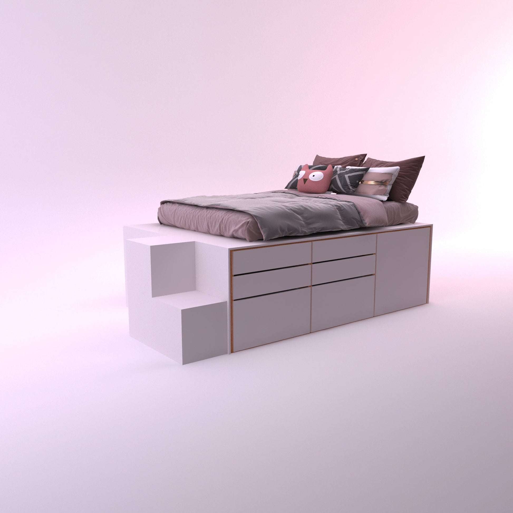 This bed plan is for you. Both the bed and the base. It also has handy drawers and a clothes hanger. Just take the hanger and mount it. The shopping list is available in the product images. Here you can calculate how much it will cost. I thought and calculated everything for you. Have a pleasant time with your family and save thousands of dollars.