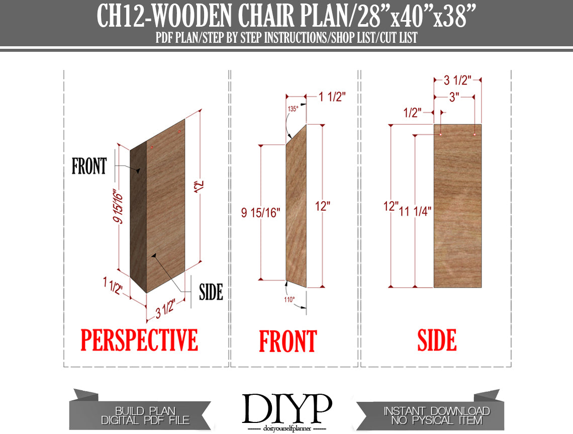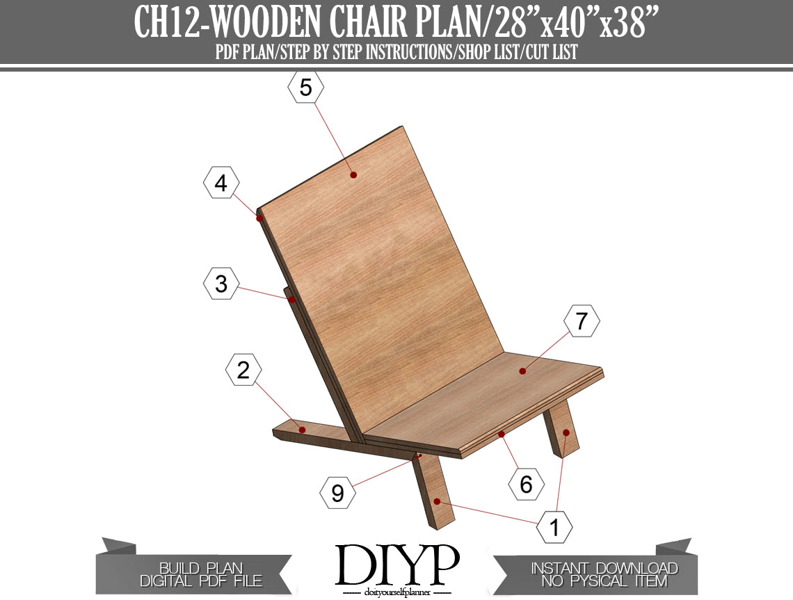 Do you want to make a beautiful chair? With this plan, you have everything you need. It includes shopping list, step by step setup instructions, how to places lumber pieces, how to cut, where to screw, where to ream or which piece you should nail. All you have to do is follow the steps in the pdf file you downloaded. If you want this chair, just purchase this plan and start to make. Even you are in the beginning level of woodworking, don't worry it is very simple.