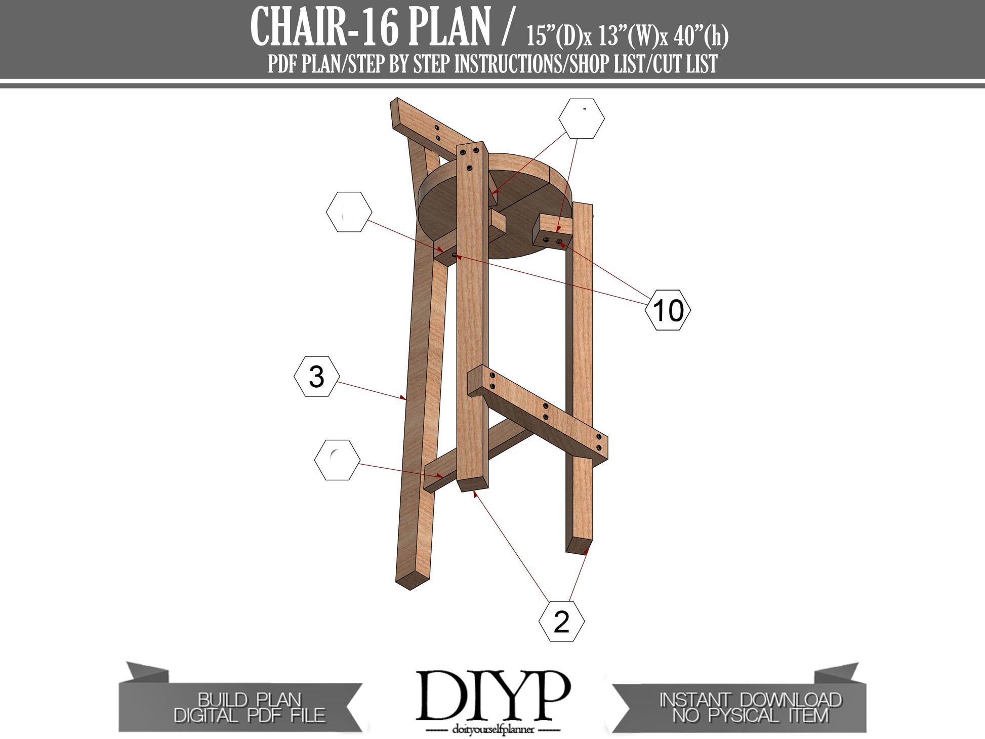 Do you want to make a beautiful rustic bar stool? With this plan, you have everything you need. It includes shopping list, step by step setup instructions, how to places lumber pieces, how to cut, where to screw, where to ream or which piece you should nail. All you have to do is follow the steps in the pdf file you downloaded. If you want this adirondack, just purchase this plan and start to make. Even you are in the beginning level of woodworking, don't worry it is very simple.