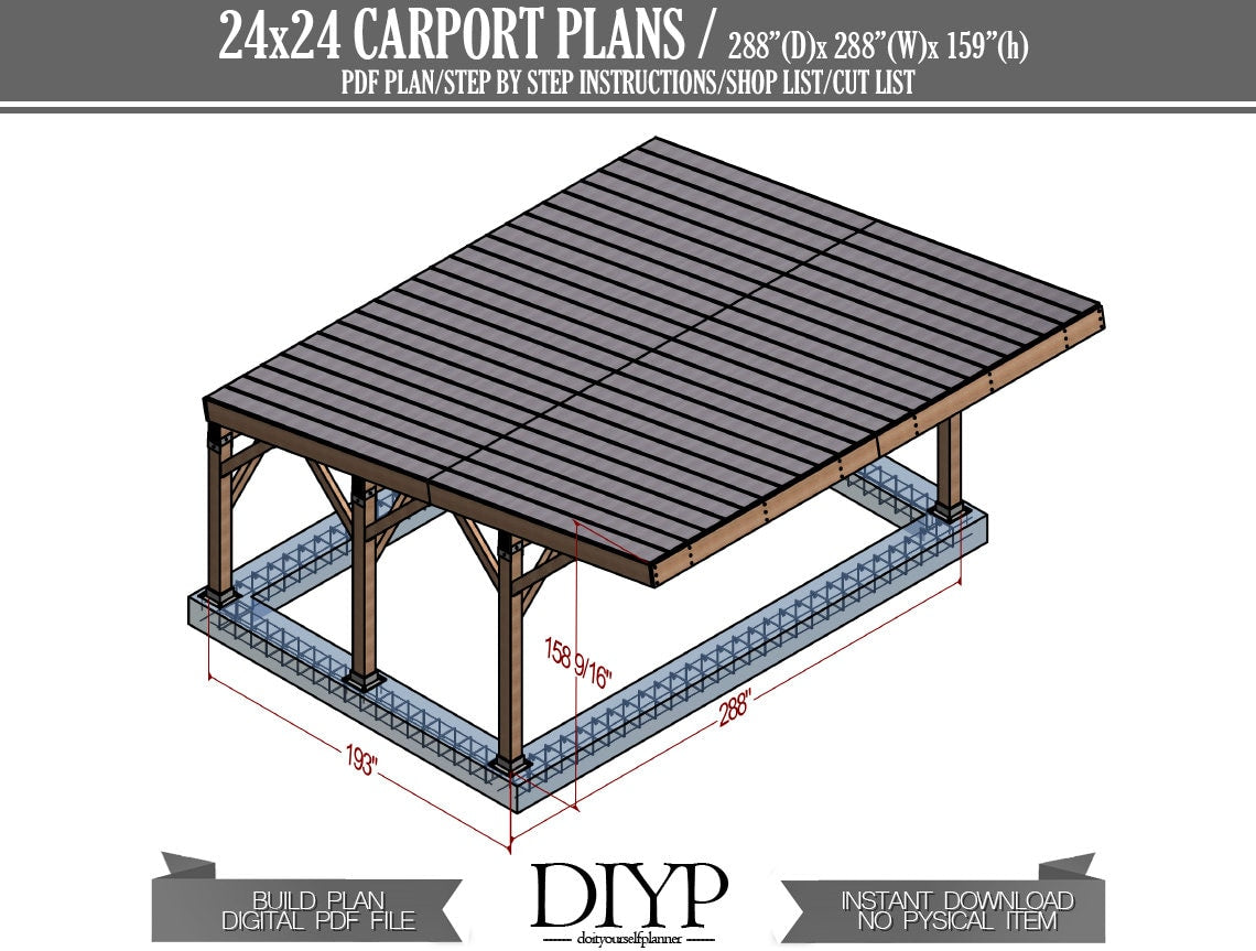 Build your own 24x24 wooden carport ? With this plan, you have everything you need. It includes shopping list, step by step setup instructions, how to places lumber pieces, how to cut, where to screw, where to ream or which piece you should nail. All you have to do is follow the steps in the pdf file you downloaded. If you want this car garage just purchase this plan and start to make. Even you are in the beginning level of woodworking, don't worry it is very simple.