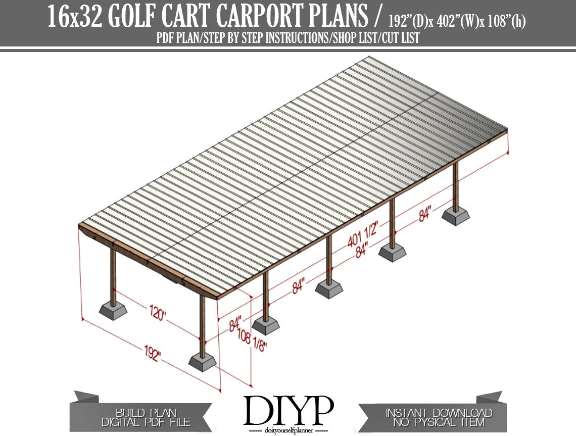 16x32 (4 Car) Carport plans, Golf Cart Sheds, Atv Shed, Atv Carport, Smart Car garage