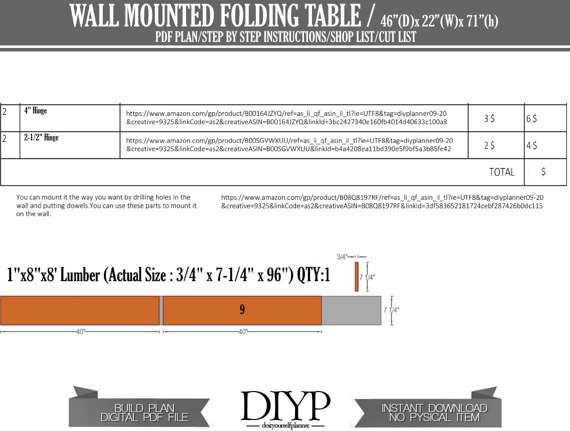 Would you like to make a nice wall mounted folding table? You can finish cutting, screwing, sanding in just a few hours.