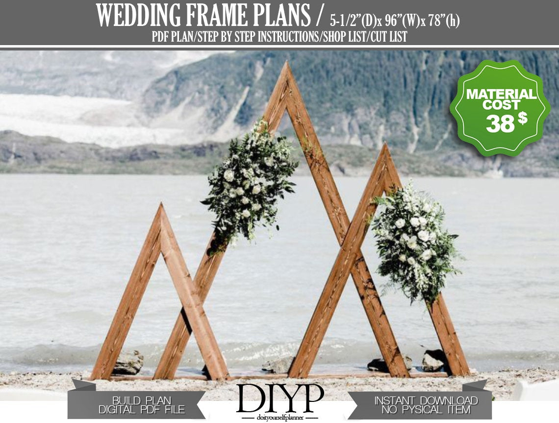 Would you like to make your own triangle mount wedding arbor for a low price.Great idea for your happiest day.Everything you need is in this plan.This wedding arch approx. cost is 38$.
