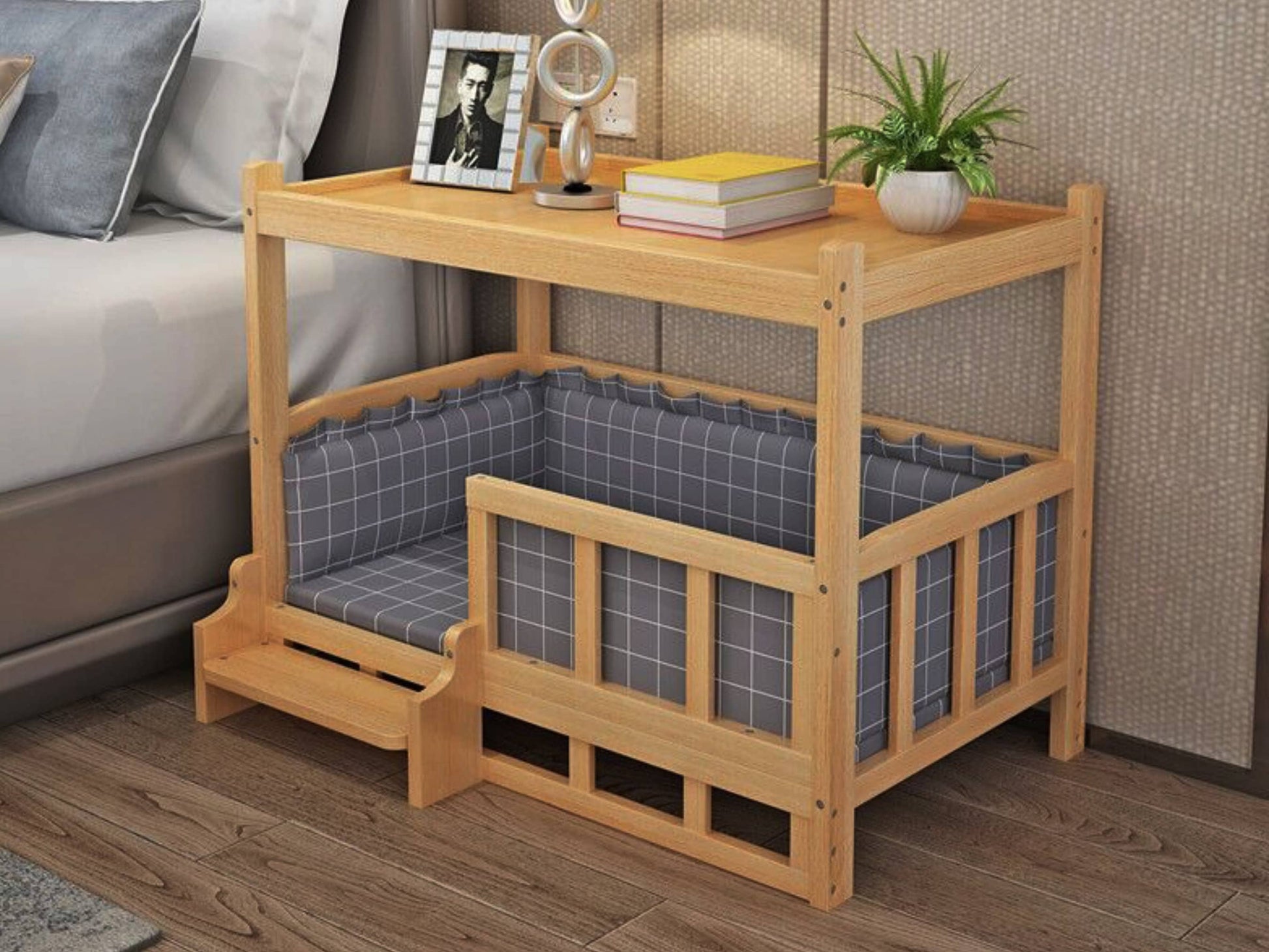 Wooden Elevated Dog Bed Plan, Bedside/Sofa Side End Table with Dog Lounge Sofa, Perfect for Dogs Cats, Spacious Storage