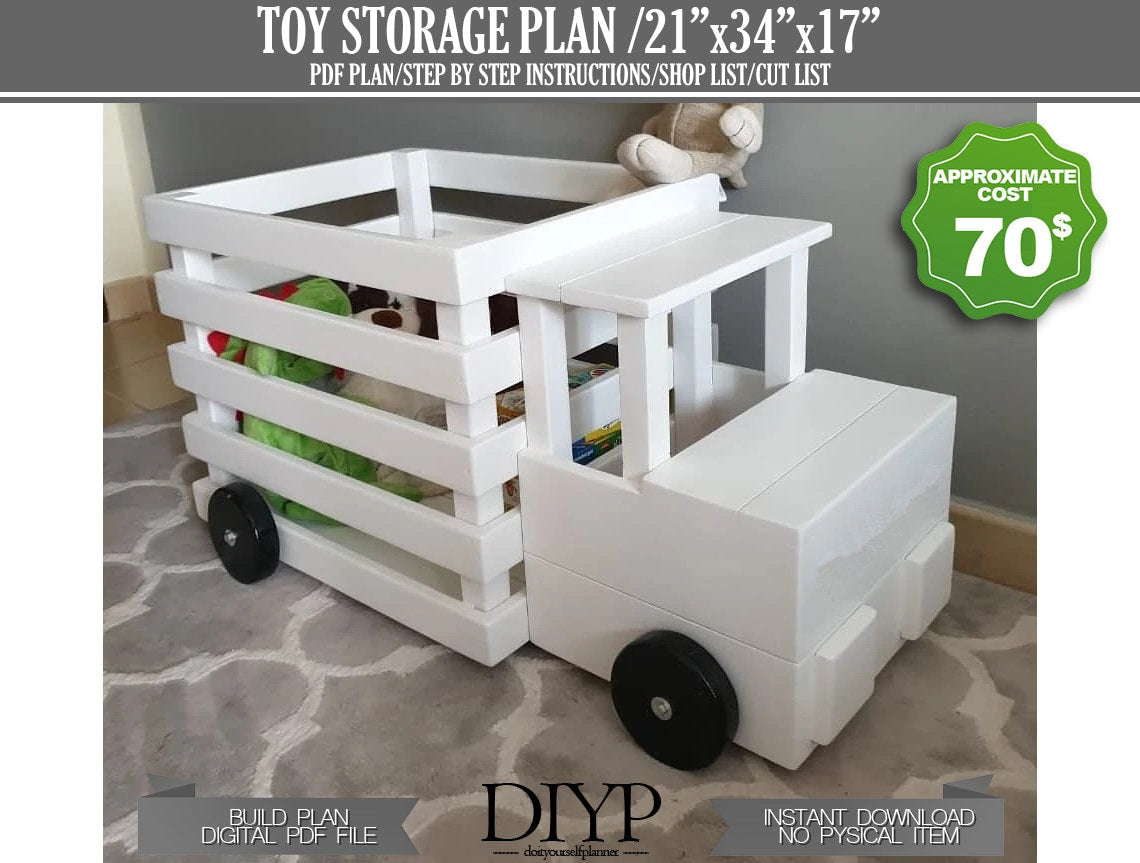 wooden toy storage, affordable playroom furniture, build plans for truck toy storage