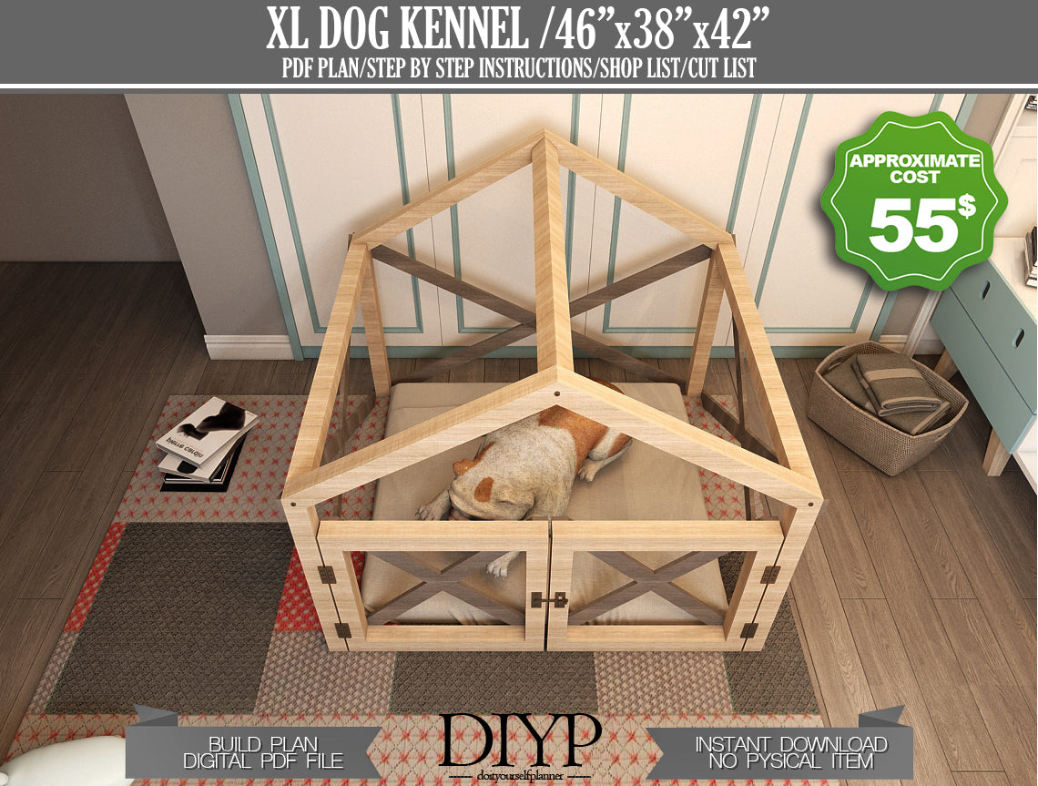 XL Dog Kennel Plans - DIY, Easy-to-Follow with Construction Animation, Shopping & Cutting Lists